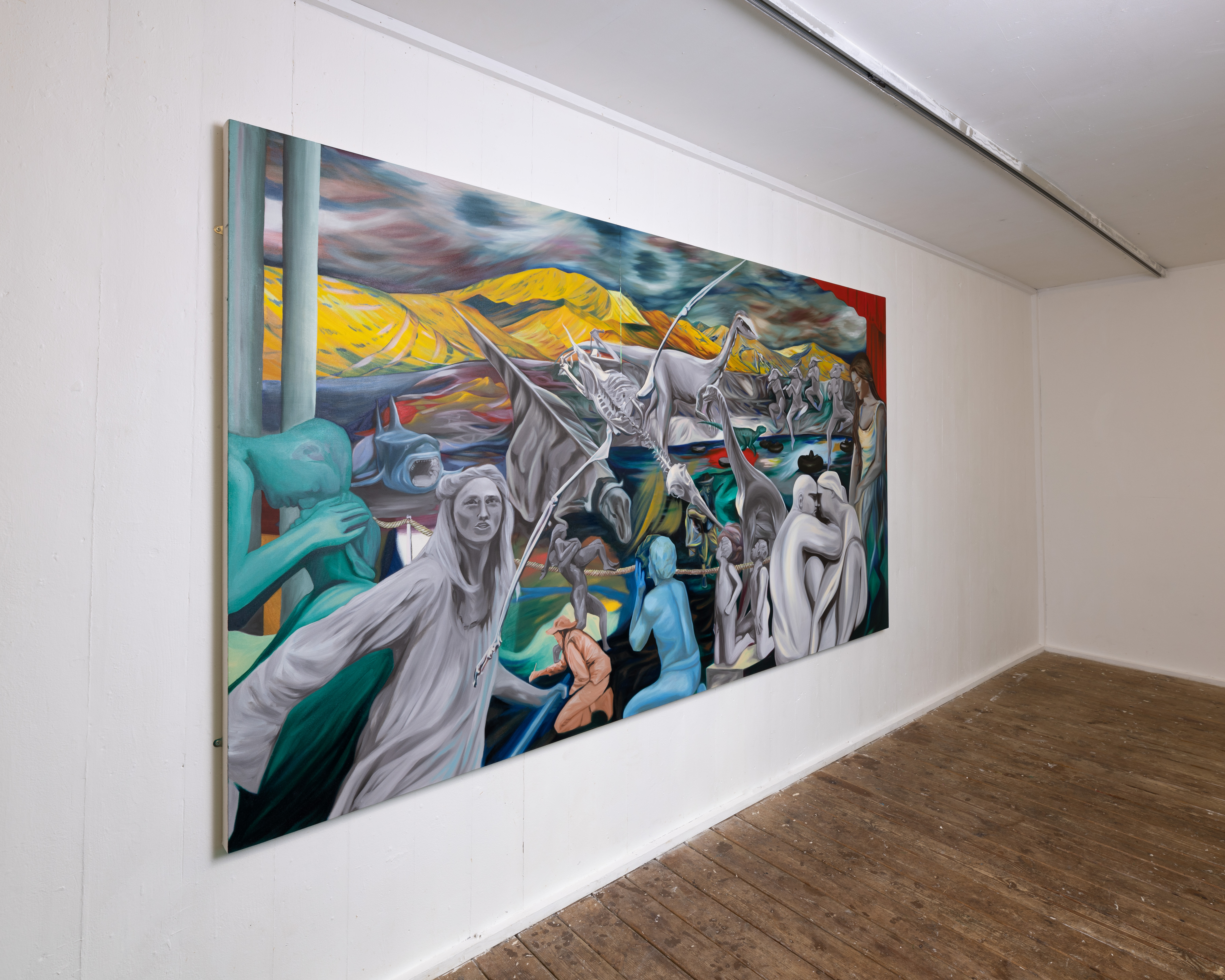 'Dinosaur Park' Solo Exhibition, Nye Bokboden, October 2022. 'Dinosaur Park', Oil on canvas, 250x140cm, 2022