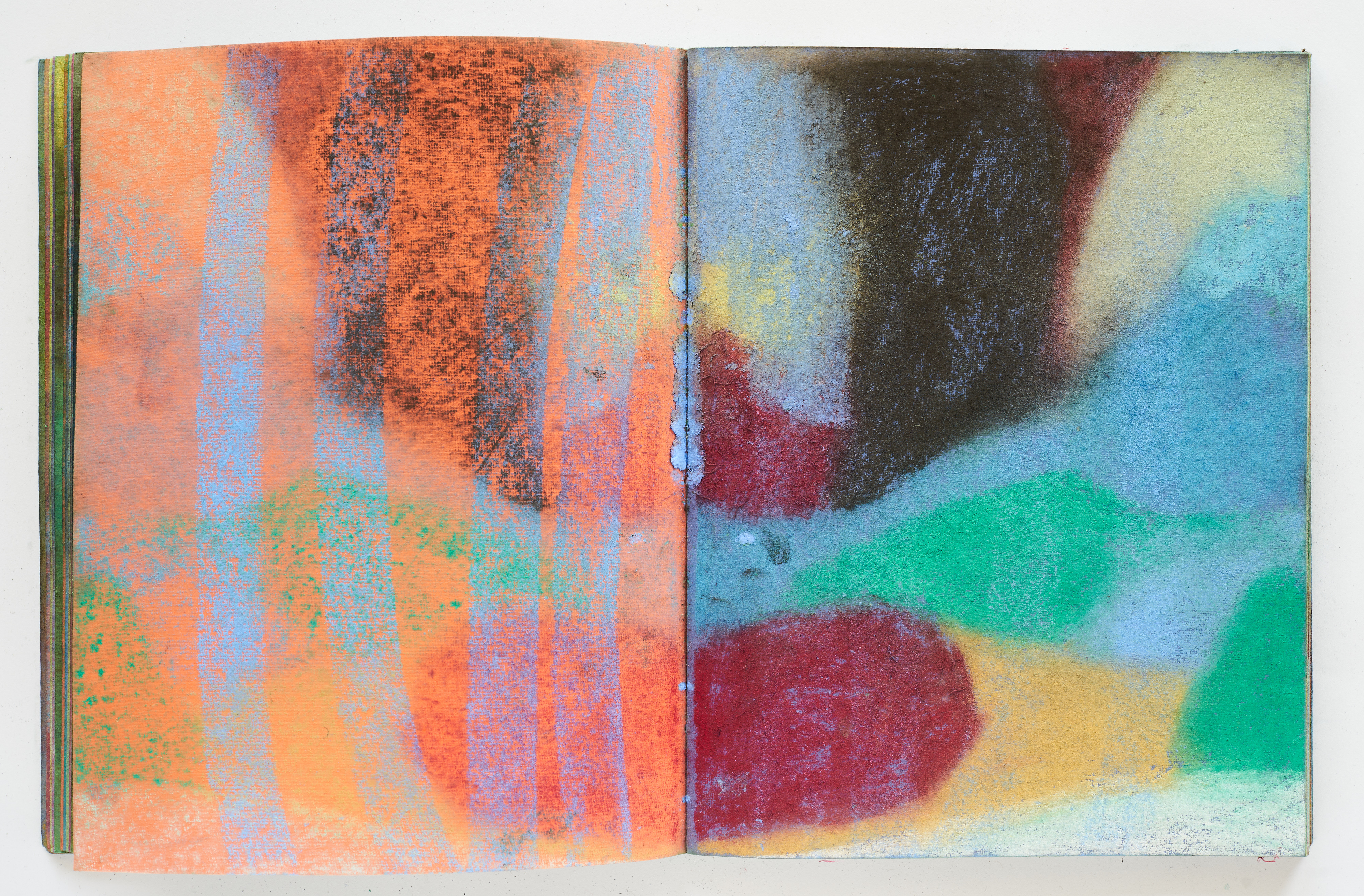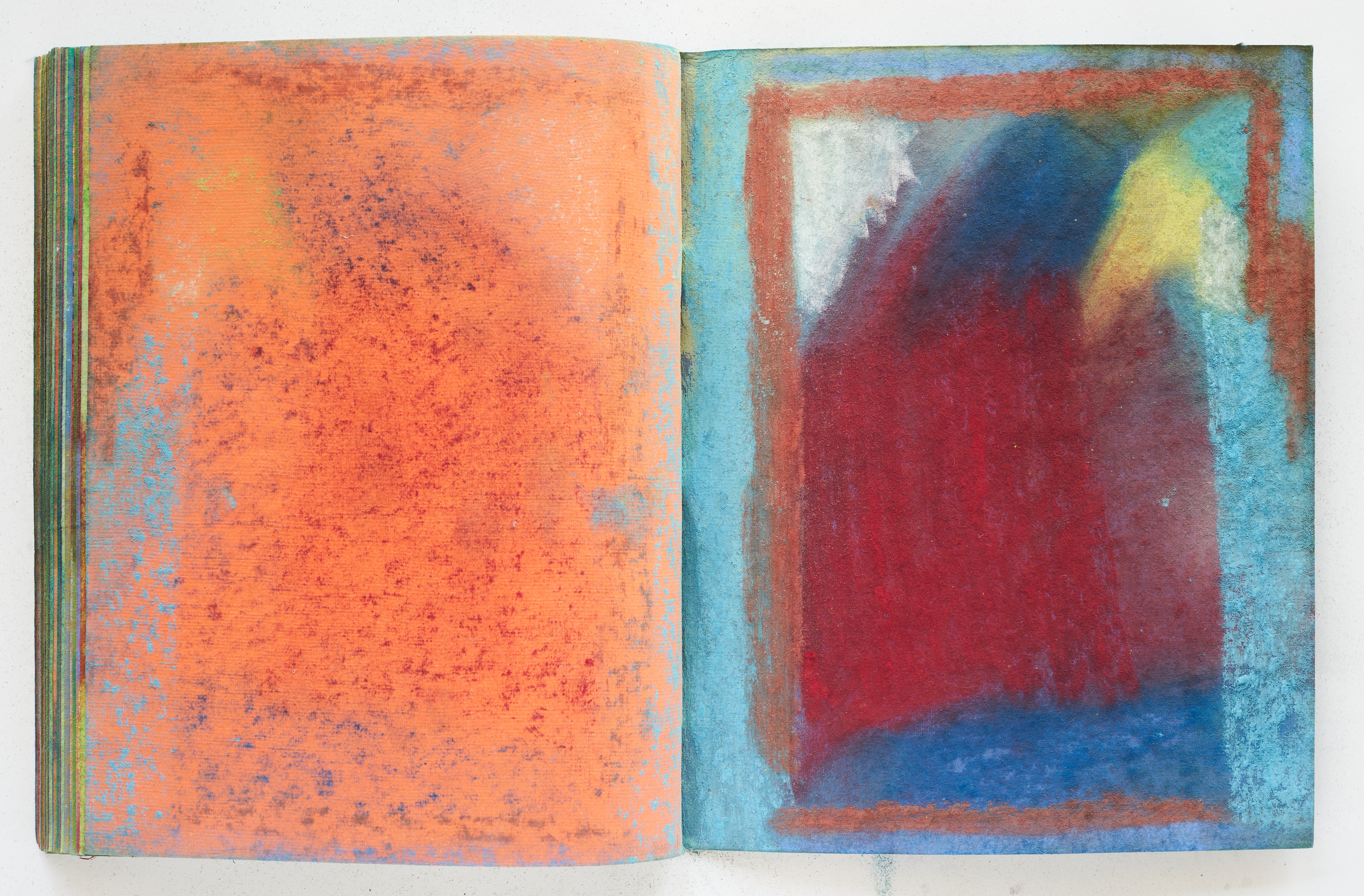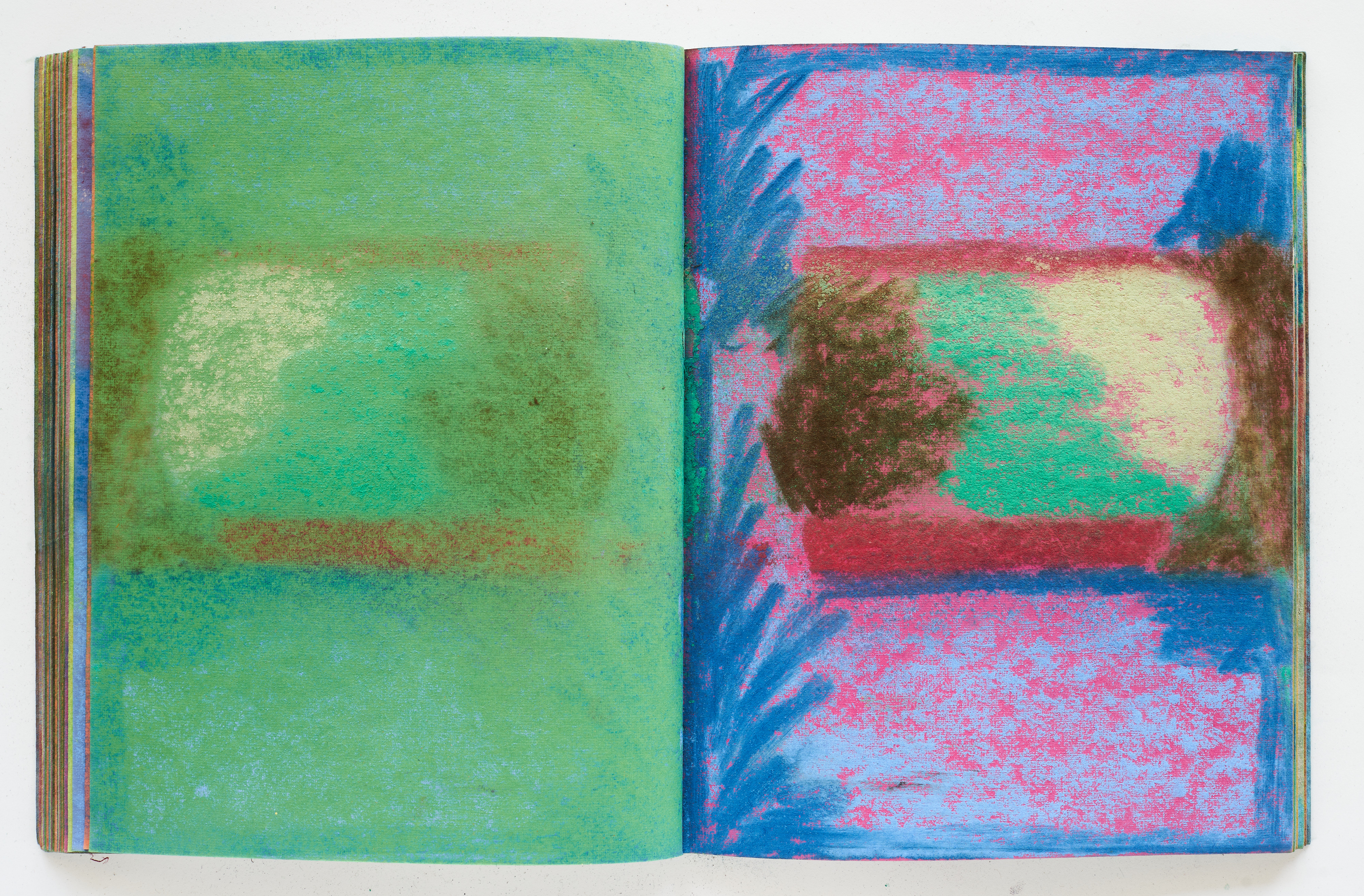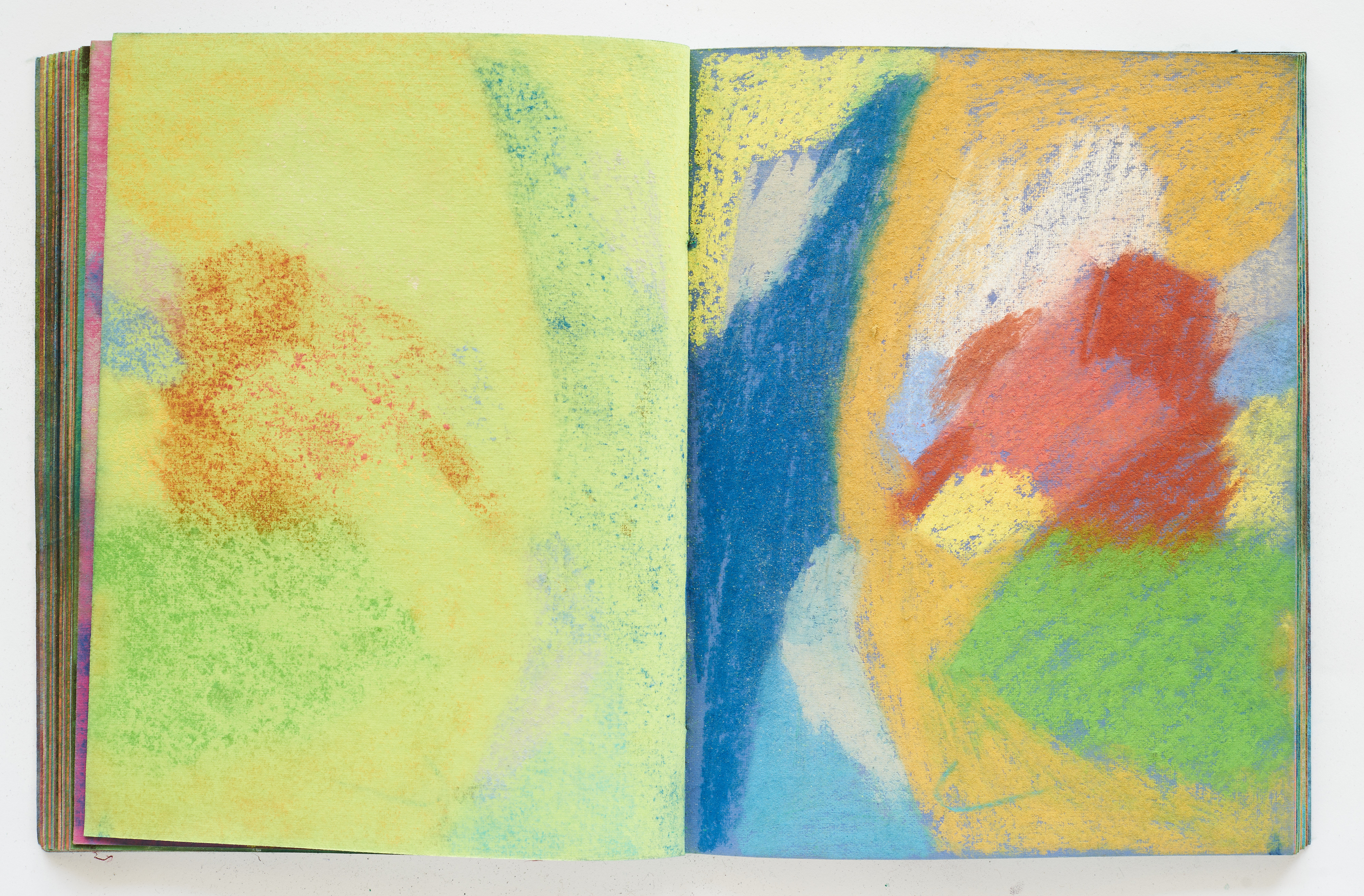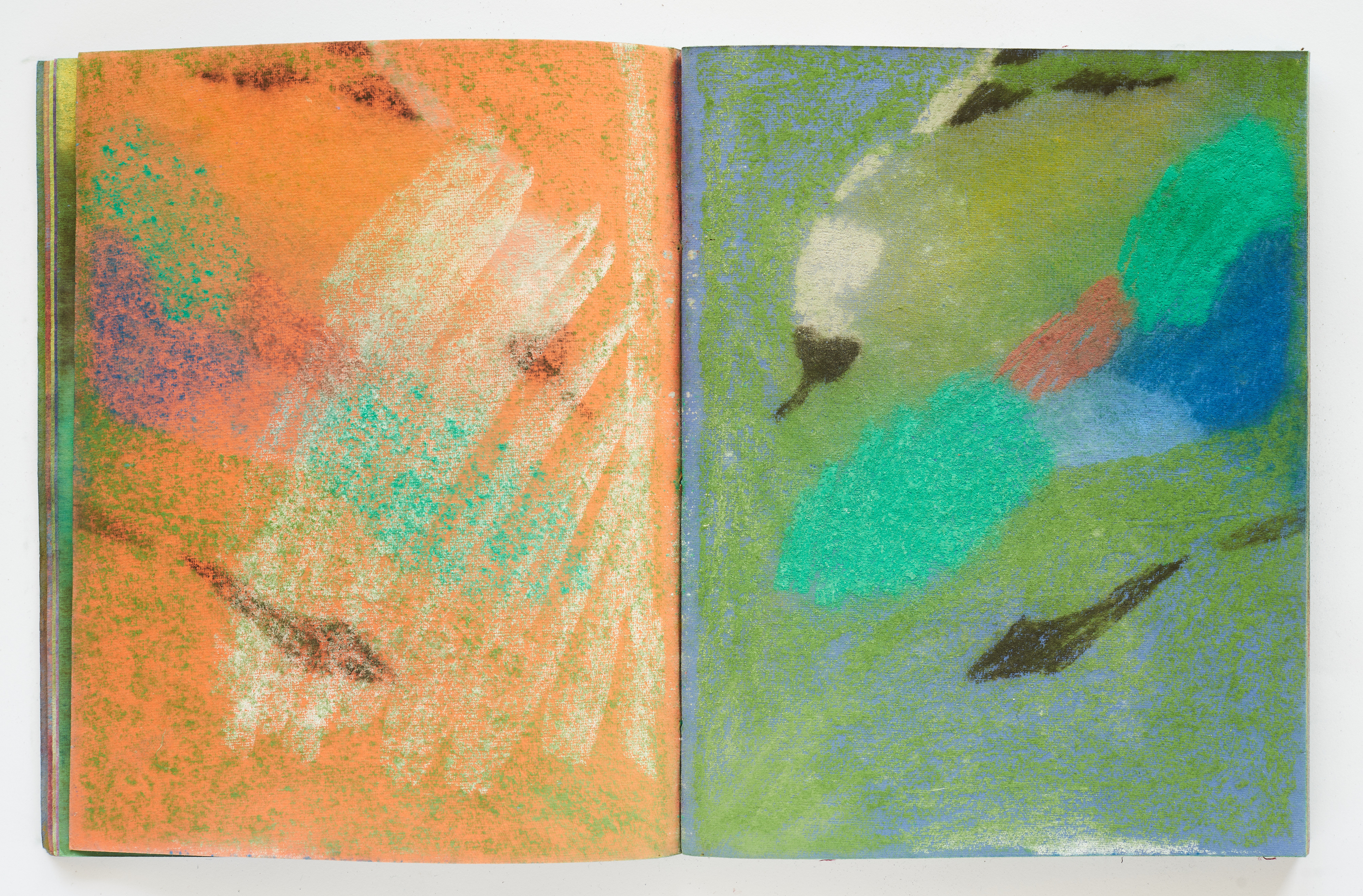 Pastel book, 2021. Handmade pastels on sugar paper book, approx. 36x22cm (open)