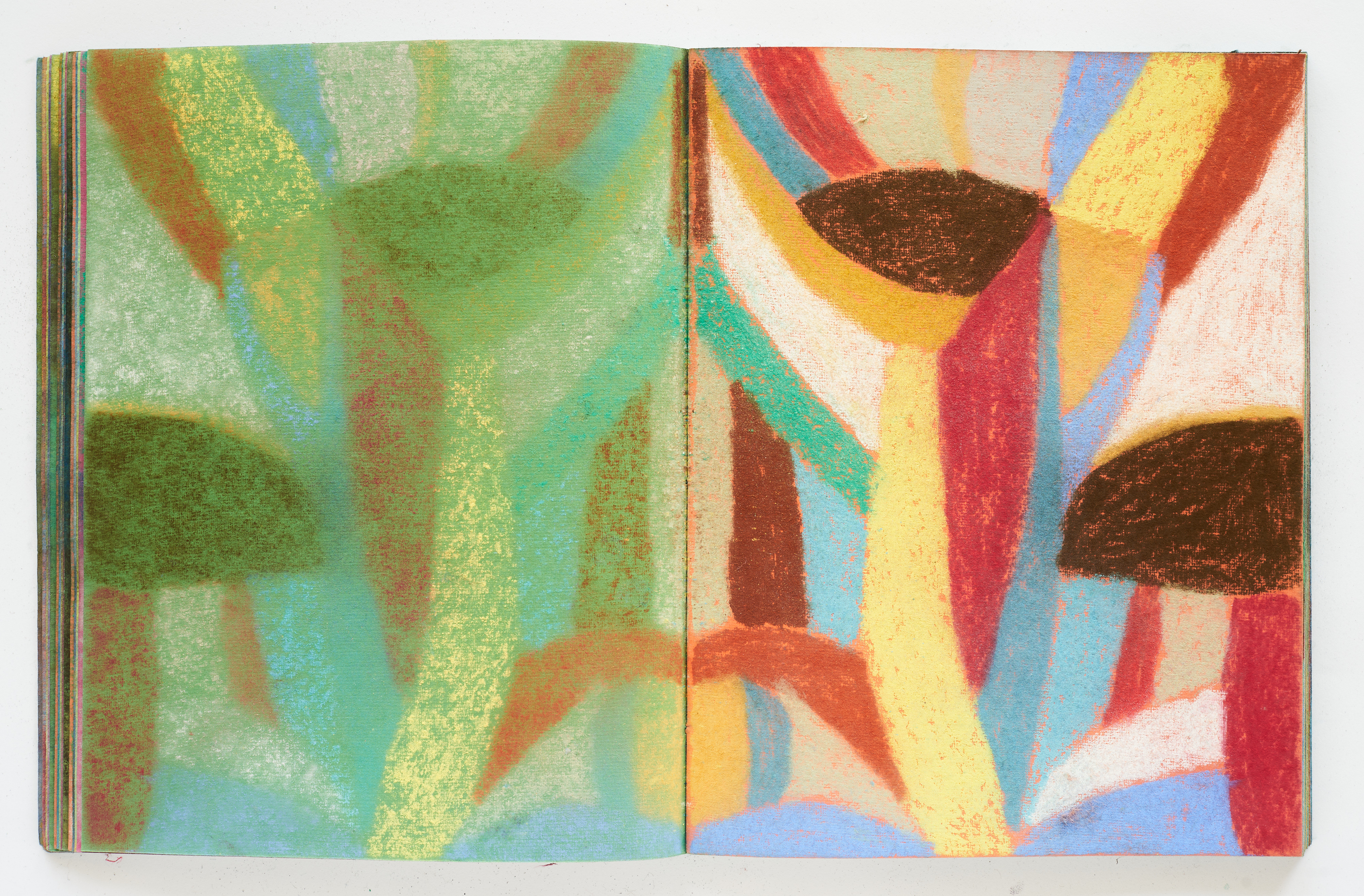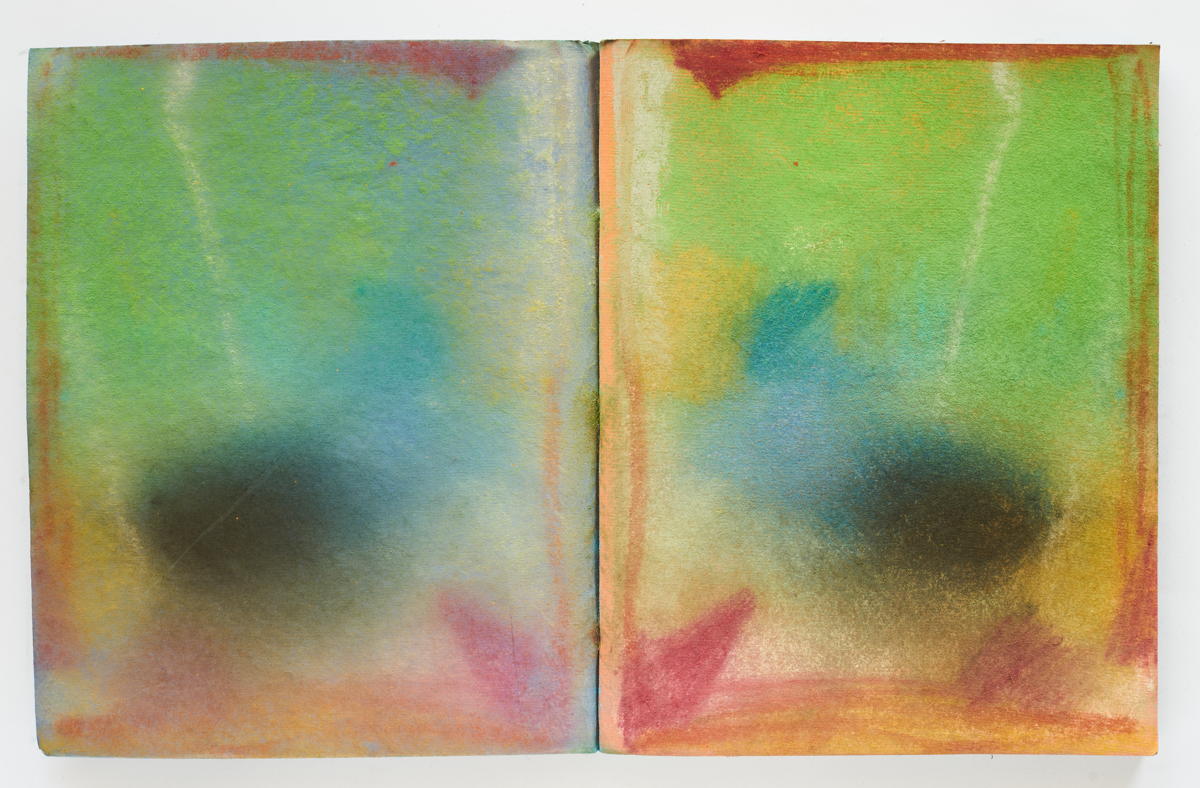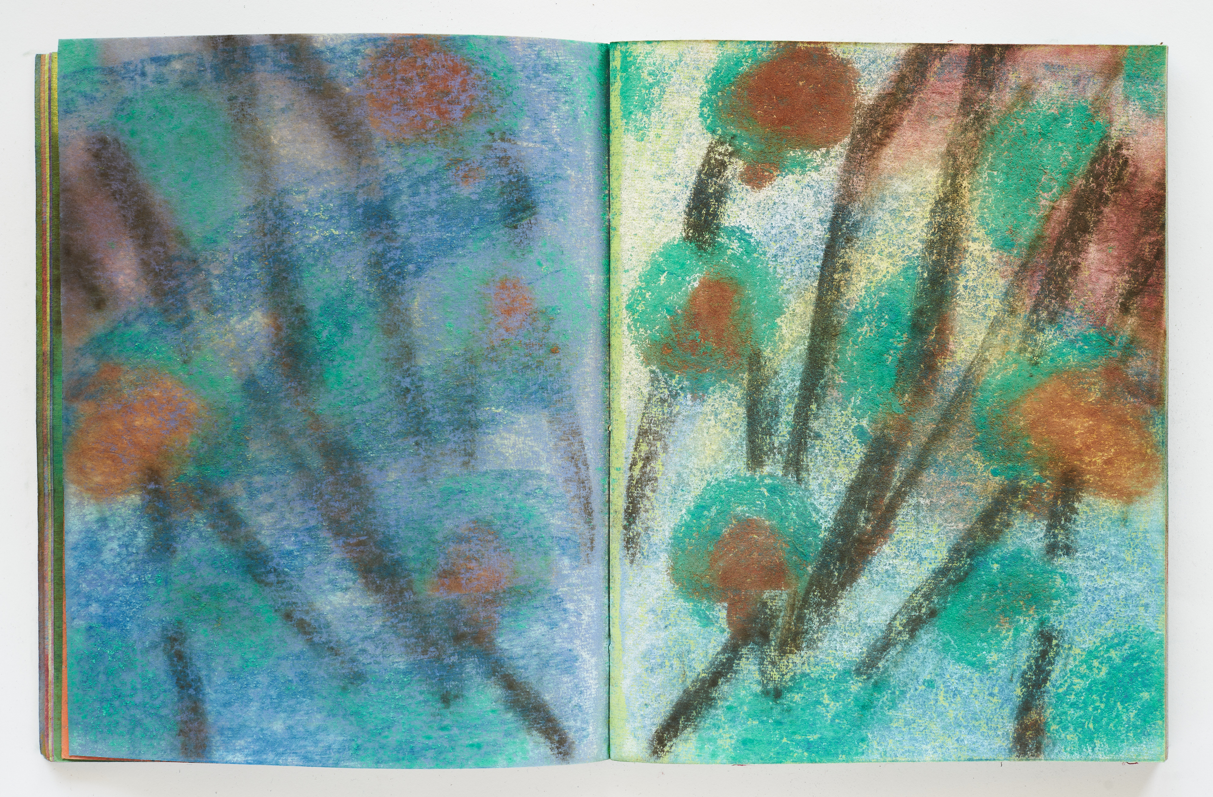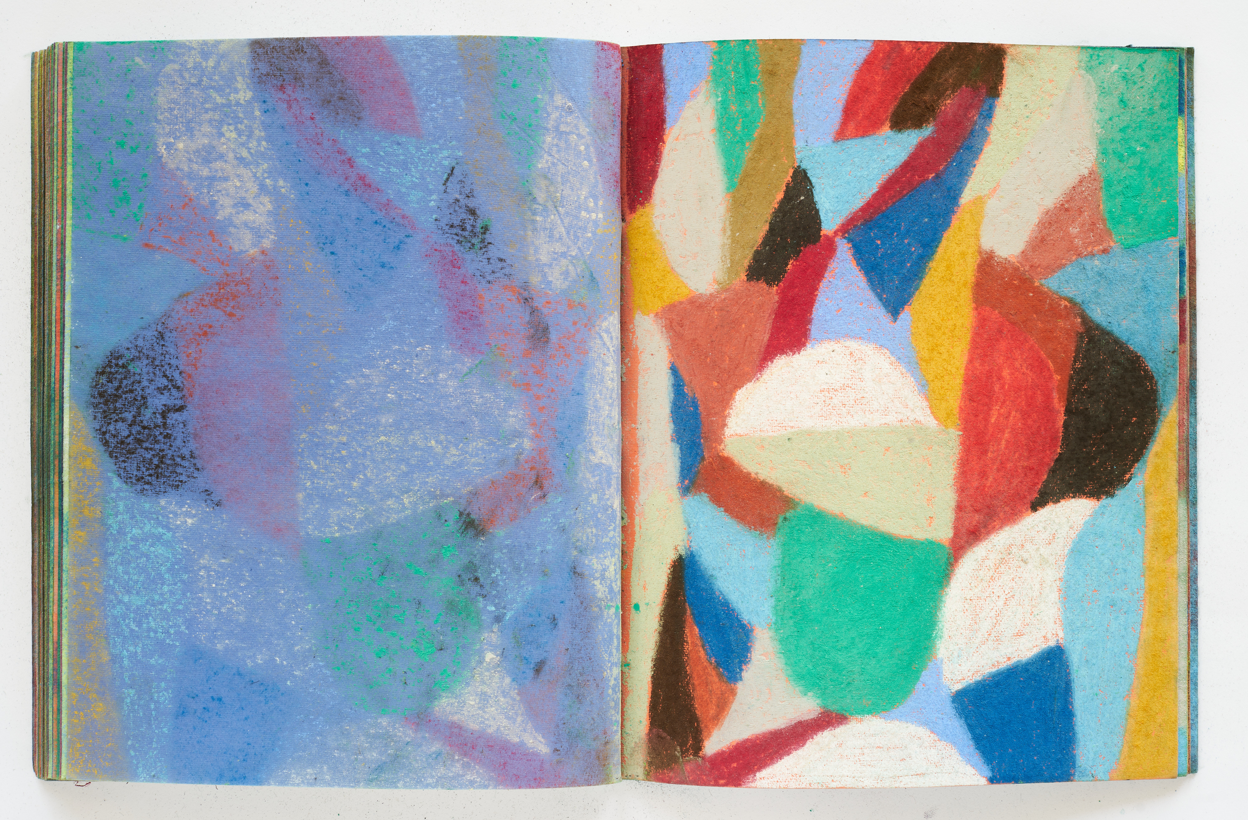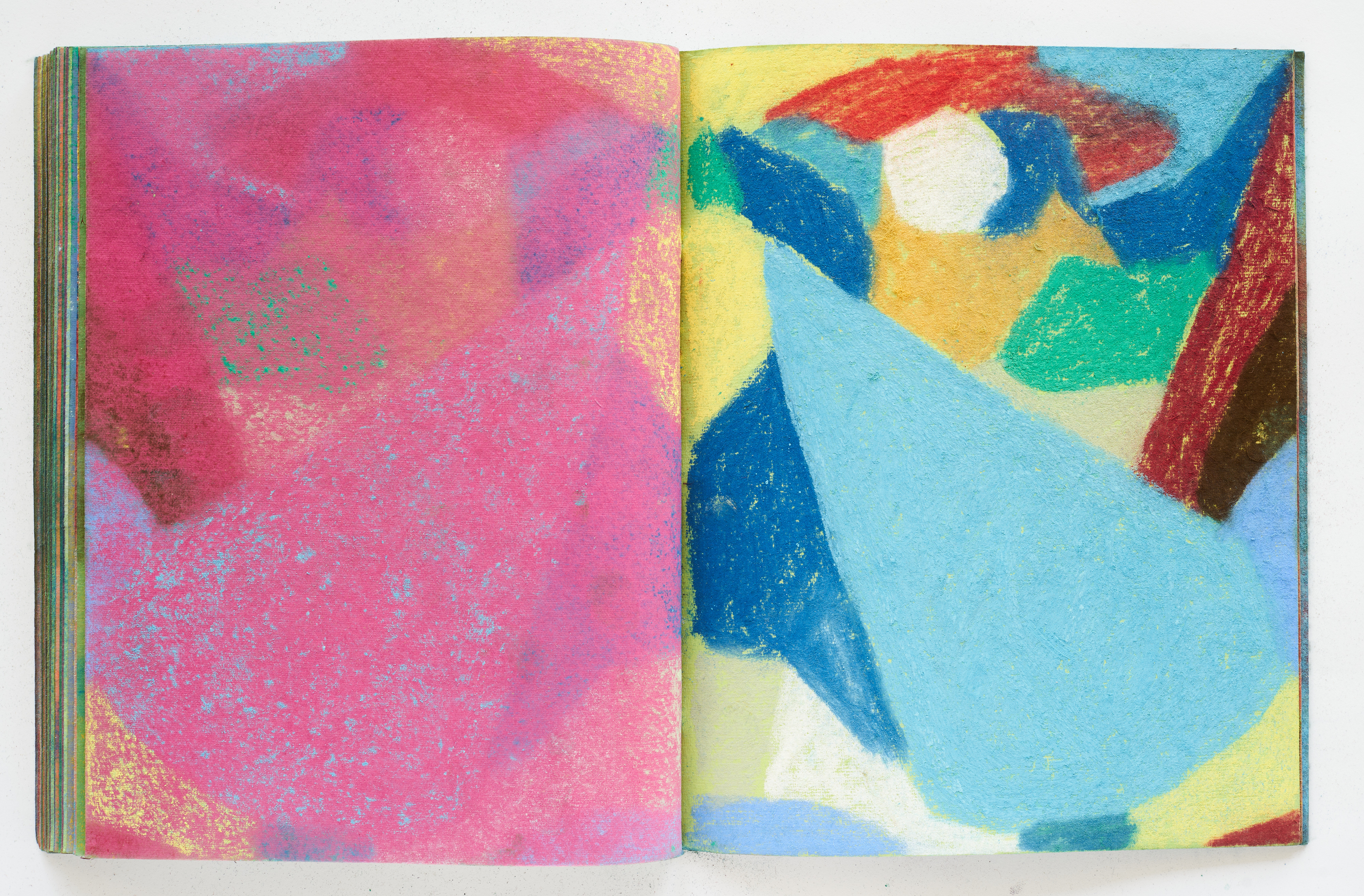 Pastel book, 2021. Handmade pastels on sugar paper book, approx. 36x22cm (open)